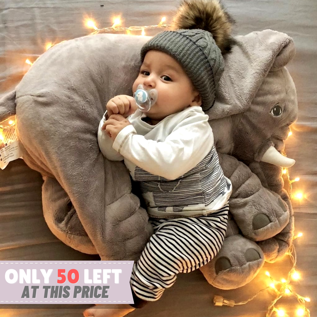 Our Baby Plush Elephant and pillow is a product that you think you don't need but once you have it this machine-washable friend will stay forever and your kid will not go anywhere without it!