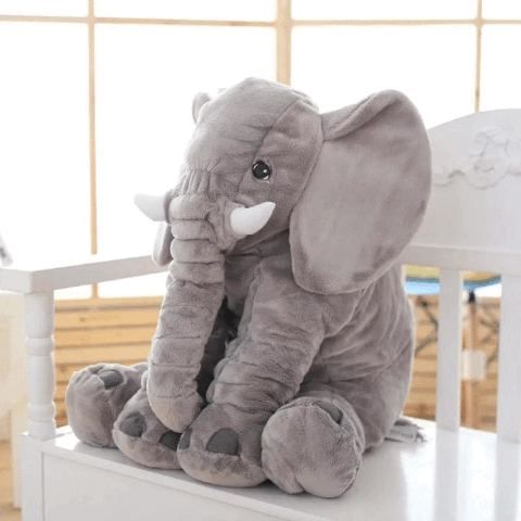The large, soft elephant plush toy doubles as a pillow and a playful stuffed animal and will always be by your side when hard times come. Made with cute features made to relieve stress levels throughout your child. It'll keep your child calm while they sleep and happy while they play!